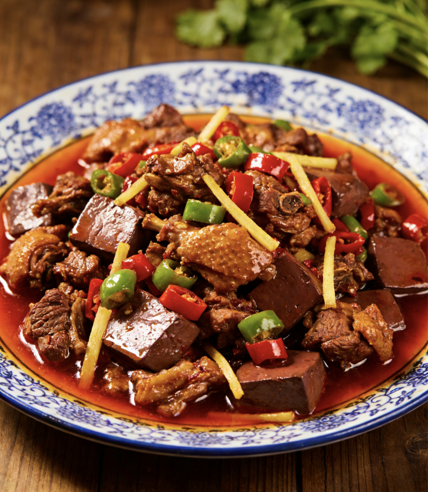 - 灵魂:新鲜鸭血(宰鸭现接,加少许米醋防凝)